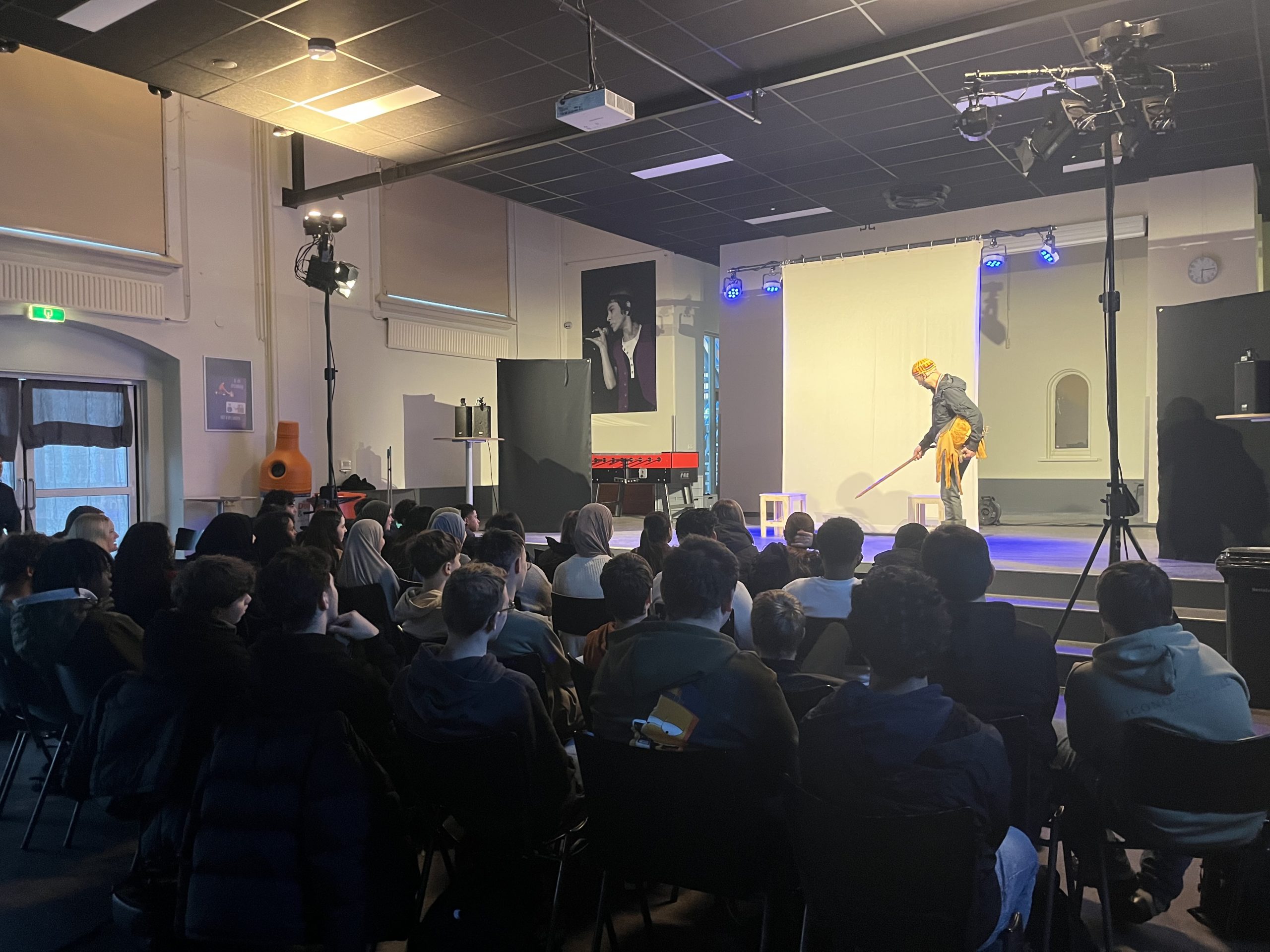 Op 12 januari zagen alle mavo-3-leerlingen de theatervoorstelling Ali van Amar El Ajjouri in de aula, als onderdeel van CKV/CAE.